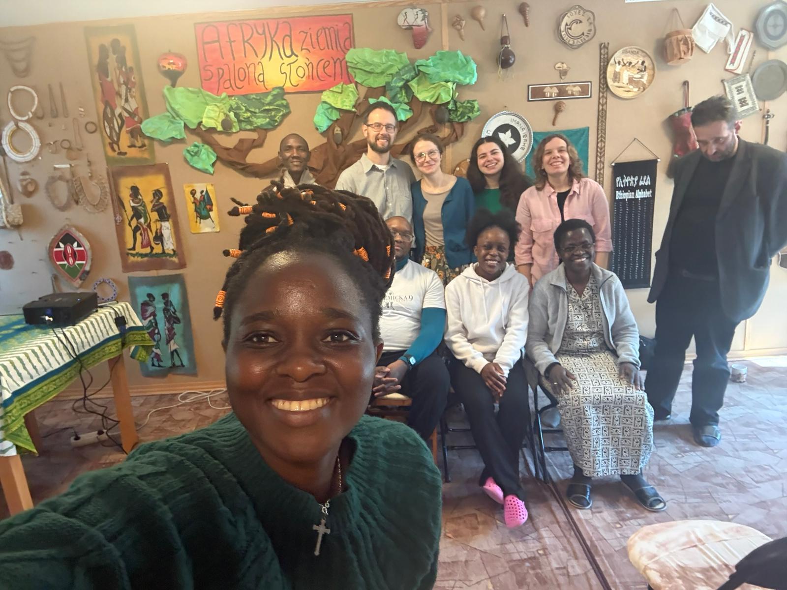 Po Eucharystii i krótkim czasie integracji o. Jean de Dieu podzielił się z nami swoim poruszającym świadectwem. Opowiedział o swojej pracy misyjnej w Mozambiku, a także o osobistych doświadczeniach związanych z walką z procederem handlu ludźmi. Jego historia była szczególnie przejmująca, ponieważ sam doświadczył przemocy i był ofiarą tego procederu.